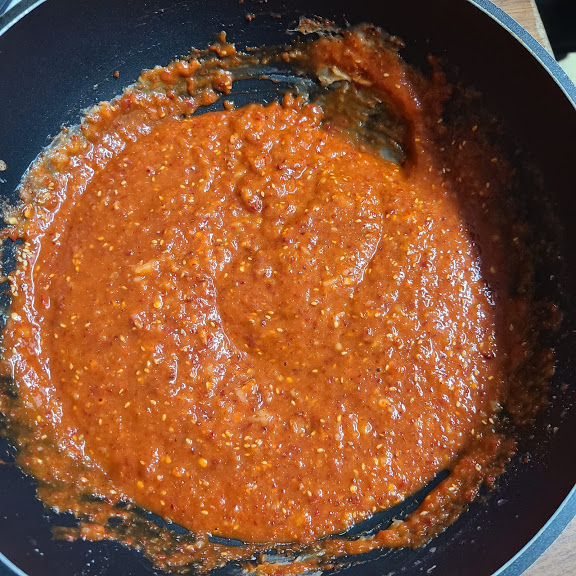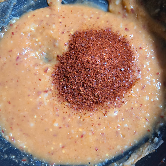 고춧가루 다섯 큰술, 설탕 1큰술넣고