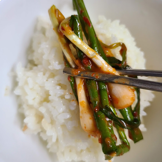 하얀 밥에 쪽파 한 줄 올려 먹으니