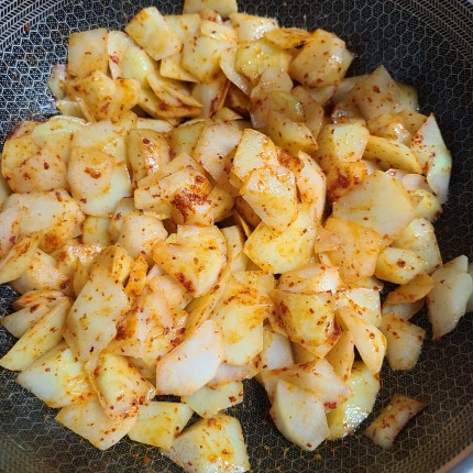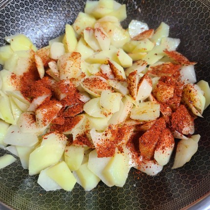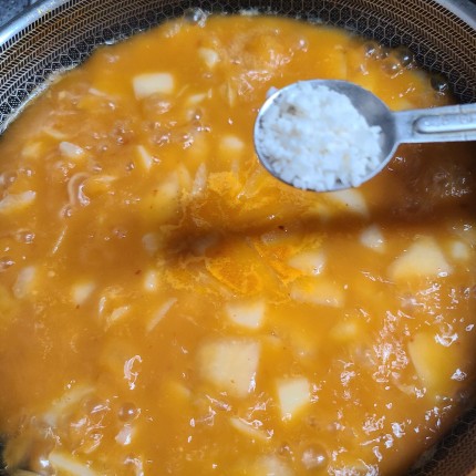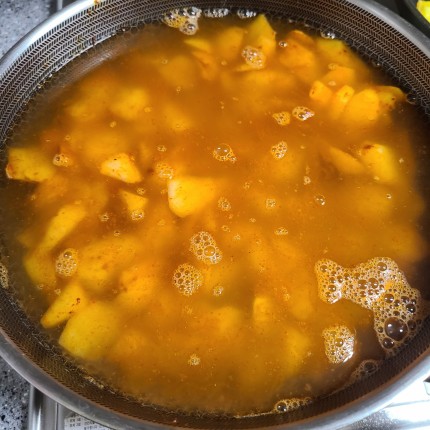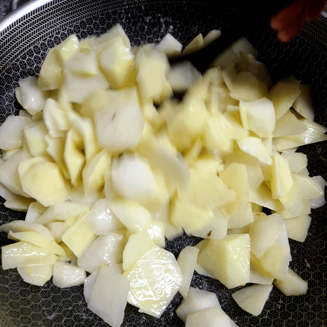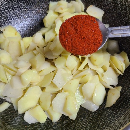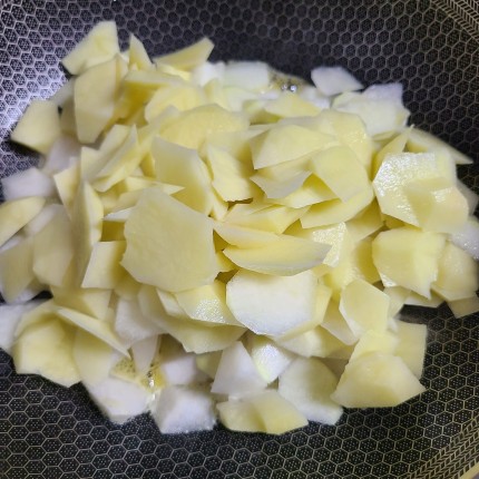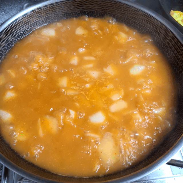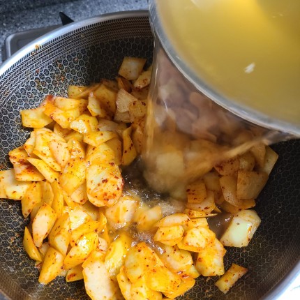 볶은 무와 감자에 육수 붓고 팔팔 끓여줍니다.