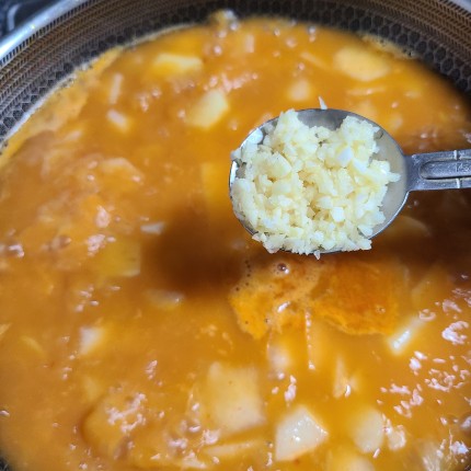 한소끔 끓인 후 다진마늘 1작은술 소금 1작은술 넣어줍니다