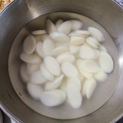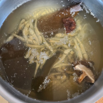 떡국용 육수(멸치 버섯 다시마) 준비와 떡국떡 물에 담가 불려줍니다.