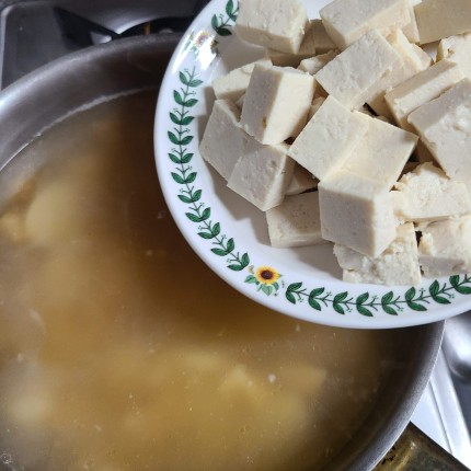 두부 넣고 팔팔 끓여줍니다.