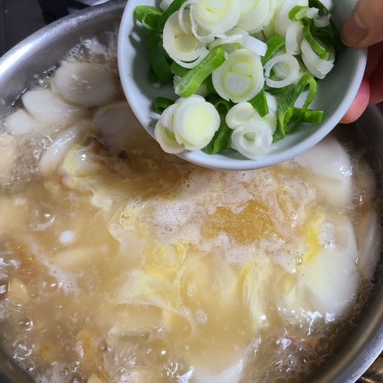 대파 총총 썰어서 넣어서 황태 떡국 끓이기 마무리합니다.