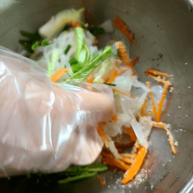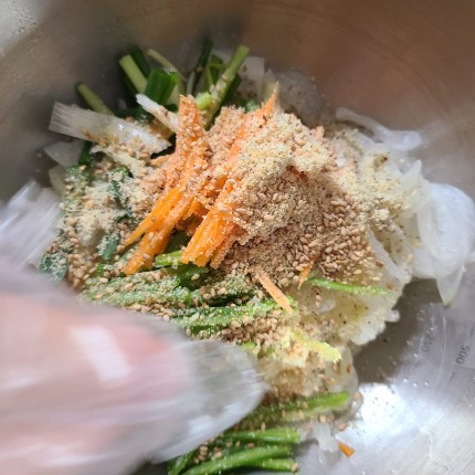 볼에 양파 청양고추 쪽파 당근 넣고