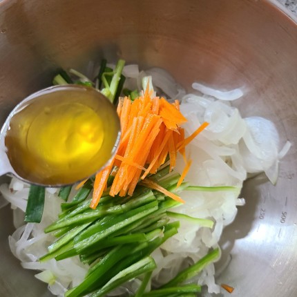 양파 준비한 야채, 양념재료 넣고 골고루 섞어서 무쳐줍니다
