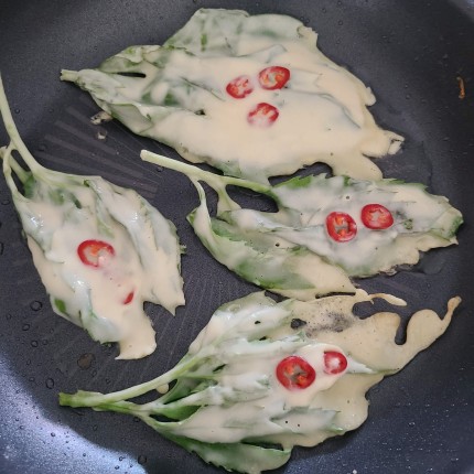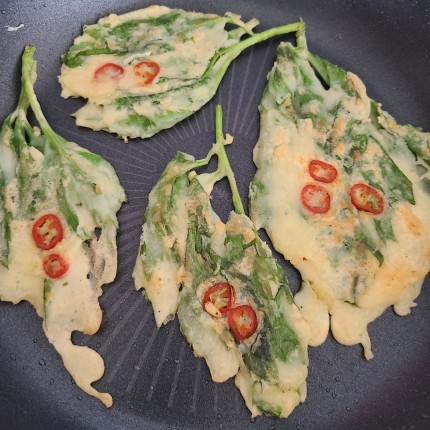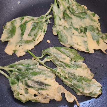 방풍나물 잎 부분만 부침개를 부쳐줍니다.
