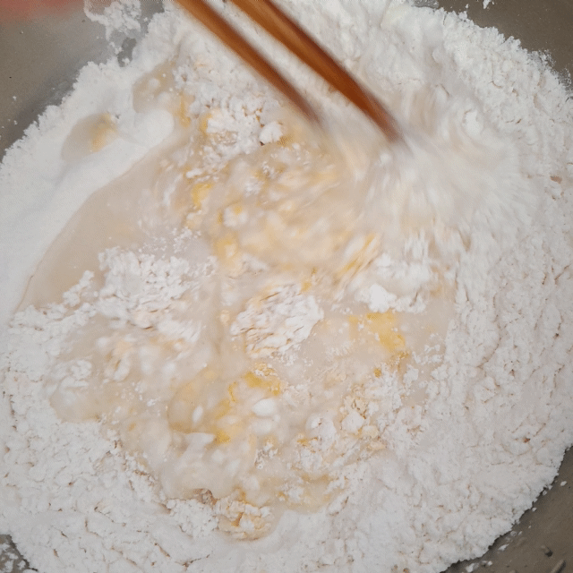 가루에 계란 1개 넣고