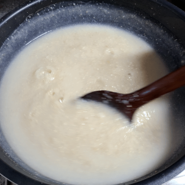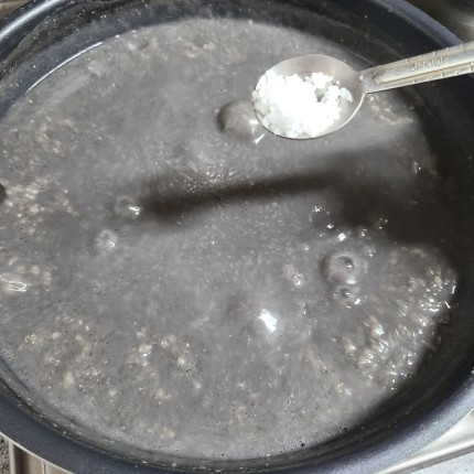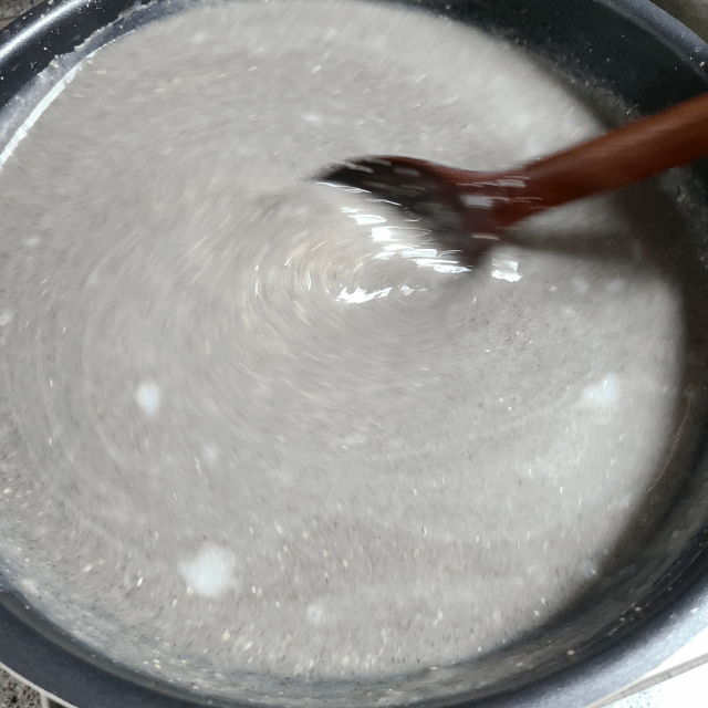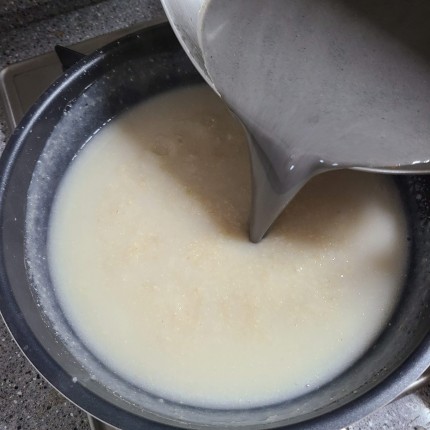 검정깨죽 끓이기 마무리 단계에서는 맛을 보면서 농도를 잘 맞추어야 합니다.