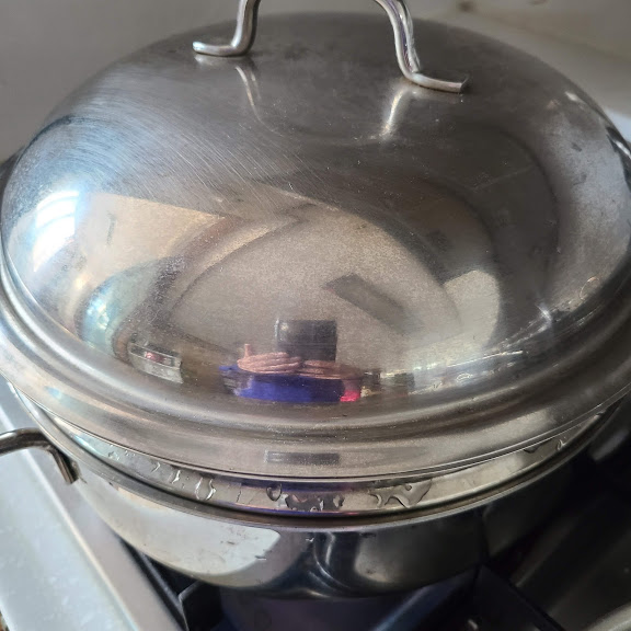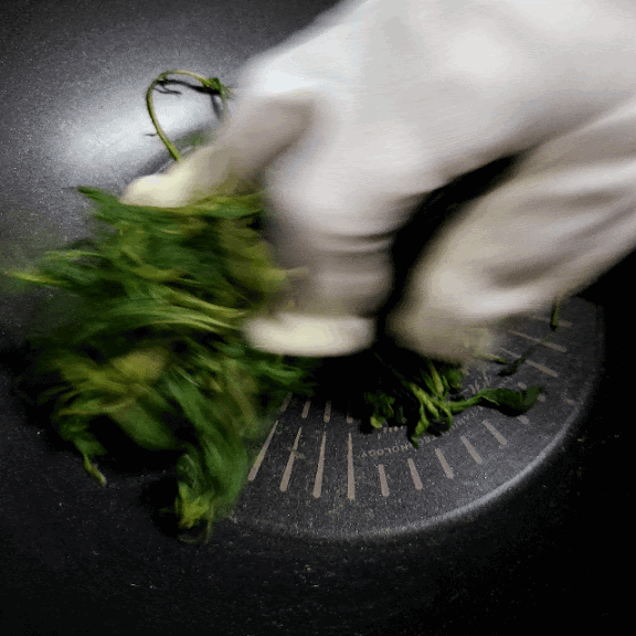 찜솥에 쑥을 넣고 끓어오르면 2분 정도 쪄줍니다.