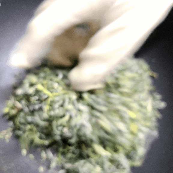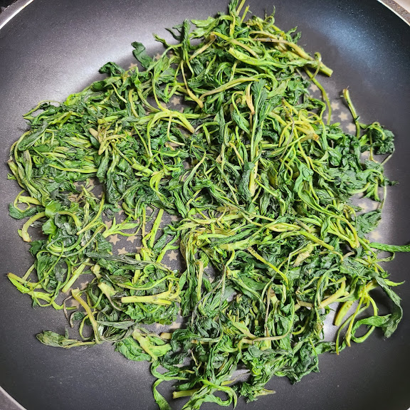 수분이 약간 제거된 쑥을 다시 프라이팬에 볶아 줘요