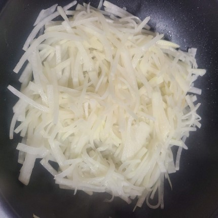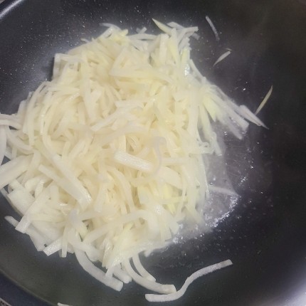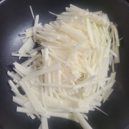팬에 참기름 1큰술 두르고 무를 볶아줍니다