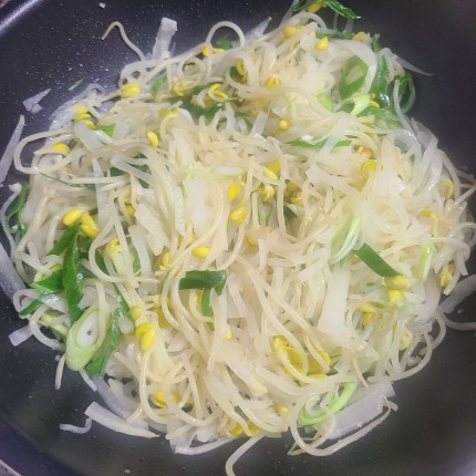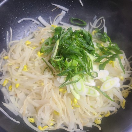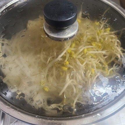 콩나물 넣고 뚜껑을 덮고 3분 삶아줍니다.