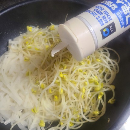 콩나물에도 소금을 뿌려서 섞어줍니다.