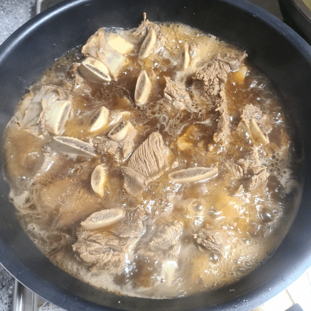 담백한 양념과 함께 끓여진 소고기 갈비찜 요리입니다.