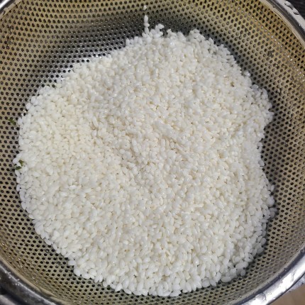 쌀은 물에 1시간 정도 불려준 후, 체에 받쳐 물기를 빼줍니다.