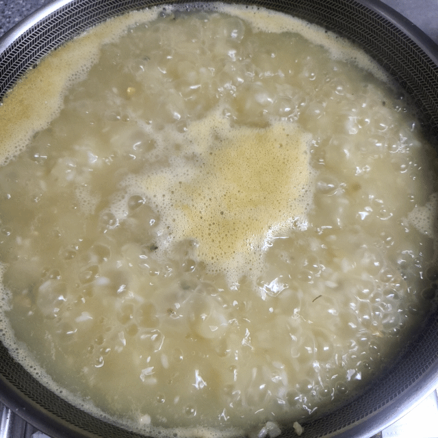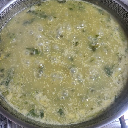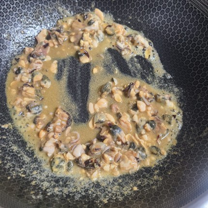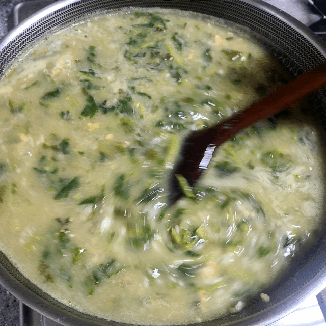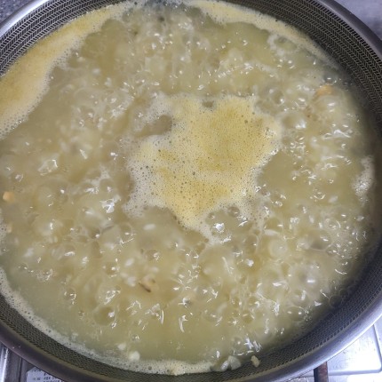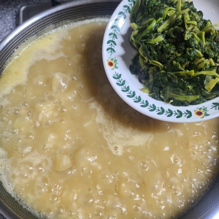 어우러져 나오는 독특한 맛 시래기 홍합죽 만들기입니다.