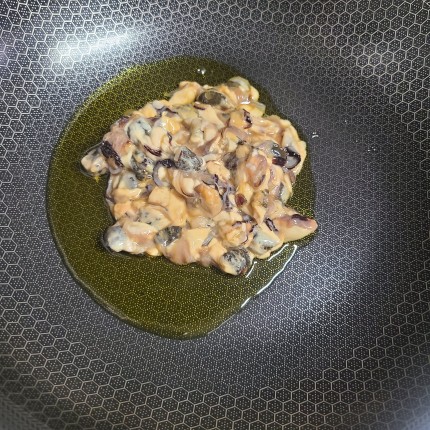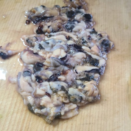 마트 시판용 홍합 씻어서 잘게 썰기합니다.