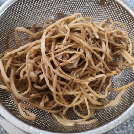 고구마 줄기의 달콤함과 간장의 짭조름한 맛이 조화를 이루며,