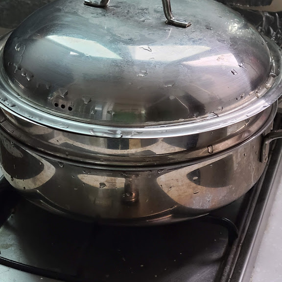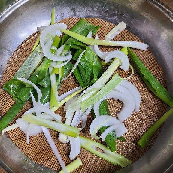 양파, 파를 덮어주고 뚜껑 닫고 쪄줍니다
