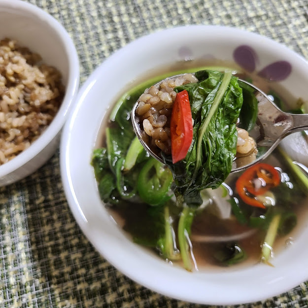 바로 끓인 상추 된장국을 먹어야 구수합니다. ㅎㅎ