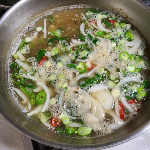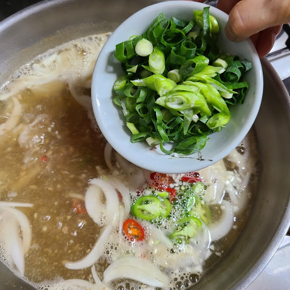 양파 고추 다진 마늘 파 넣어서 팔팔 끓여 주어요