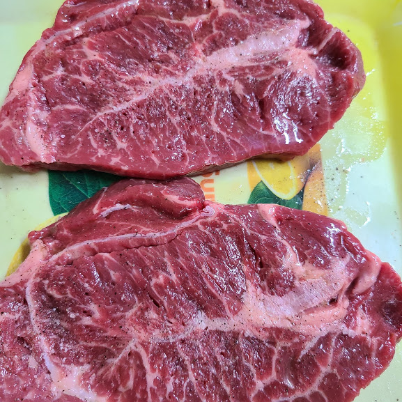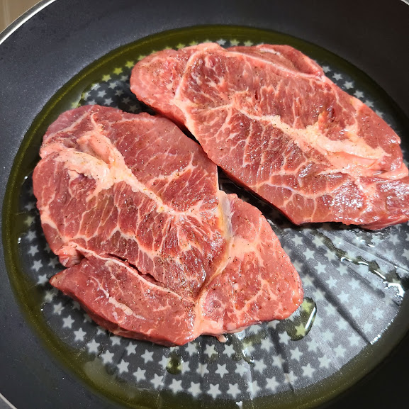 저녁에 간단한 스테이크 요리로
