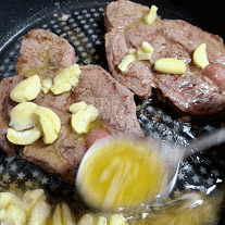 고기 위에 버터를 올려서 버터가 녹아서 배어들도록 만들어 줍니다