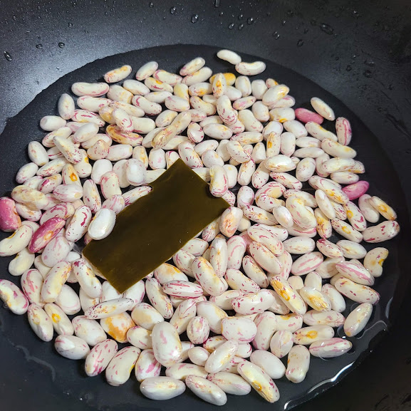 물 2컵 붓고 다시마 작은 것 넣고 뚜껑 닫고 삶아줍니다