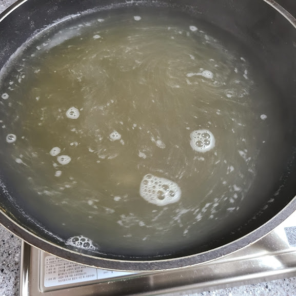 끓는물에 팔팔 삶은 다음,