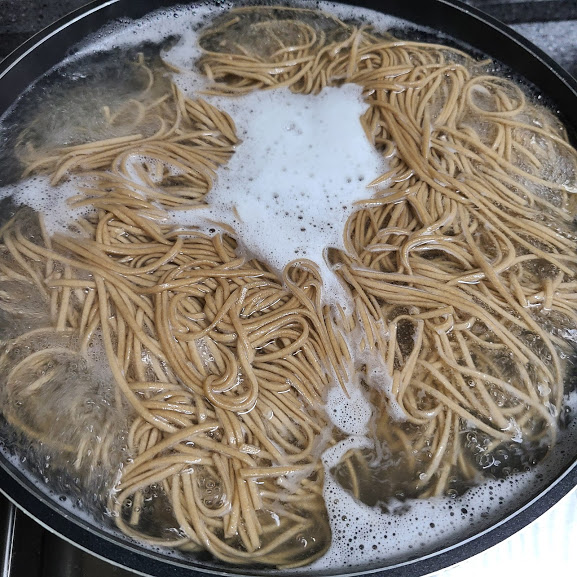 메밀 면을 삶아줍니다.