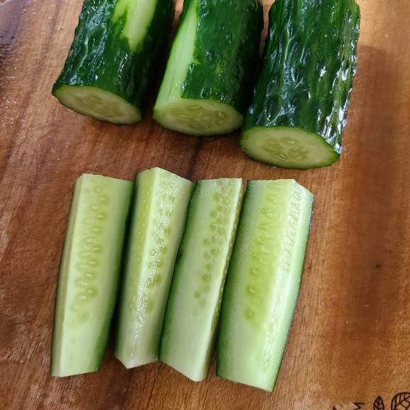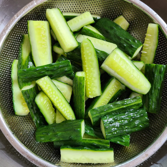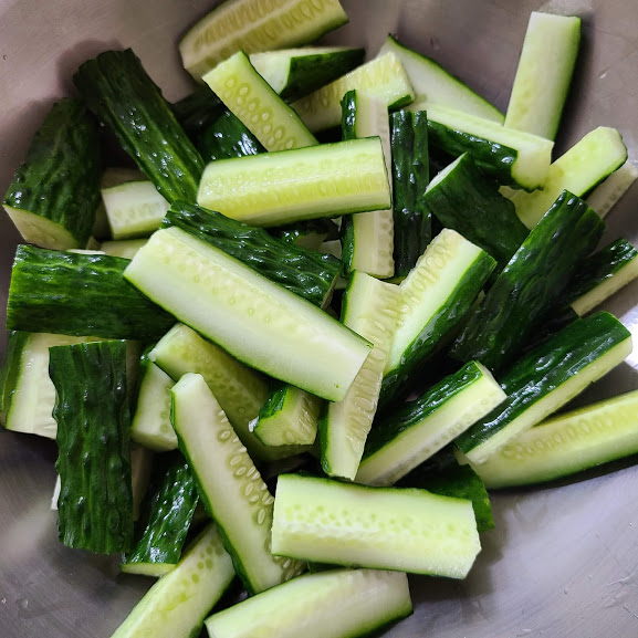 오이를 먹기 좋게 썰어 준비합니다
