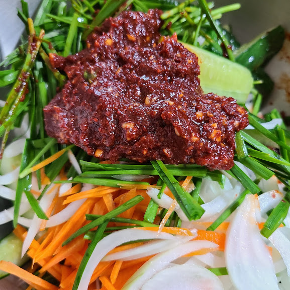 준비한 양념장 넣고 버물려 줍니다.