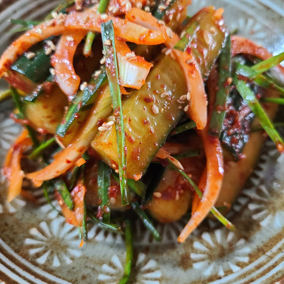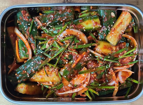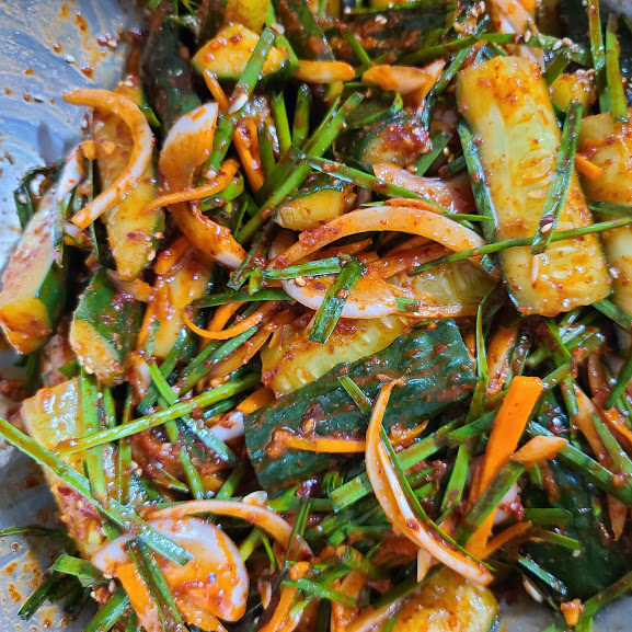 이렇게 담으니 오이김치답게 색상이 나오네요. ㅎㅎ