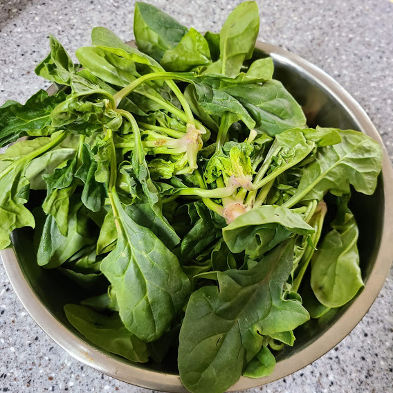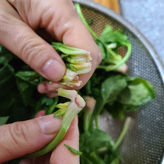 시금치를 큰 것들은 먹기 좋게 찢어서 한 번 정도 썰어서 준비합니다.