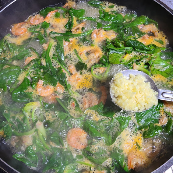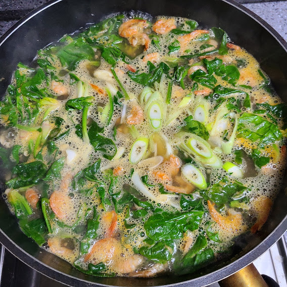 오늘 조개도 준비하고 건새우를 활용했답니다.