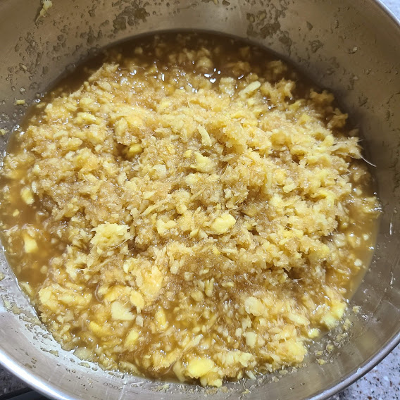 볼에 담아서 간 생강과 1:1로 골고루 섞어줍니다.