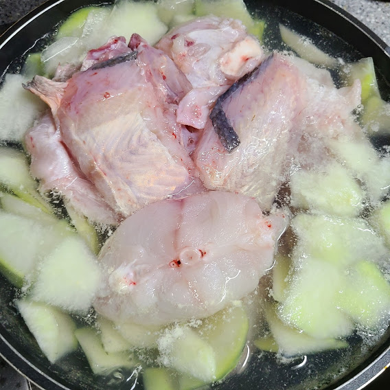 물메기는 너무 많이 끓이면 생선이 풀리므로 10분 정도로 끓여줍니다.