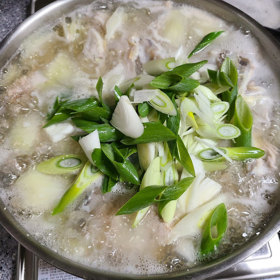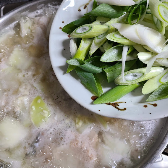 쌀뜨물 붓고 팔팔 끓여 줍니다.