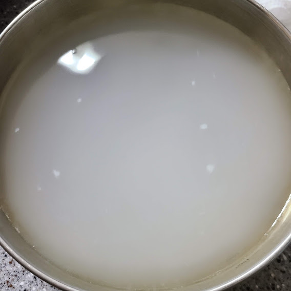 쌀뜨물이 없을 경우 생수를 사용하여도 됩니다.