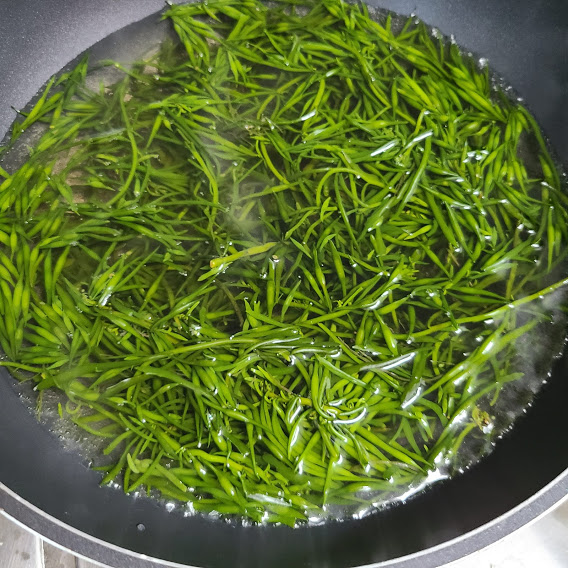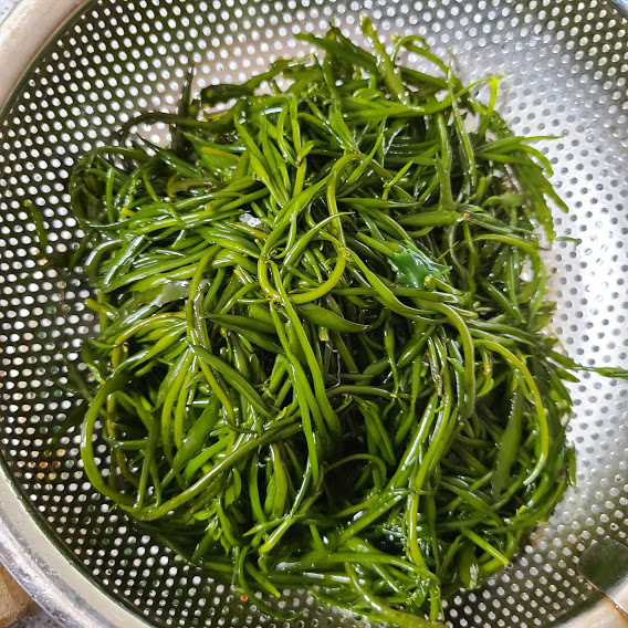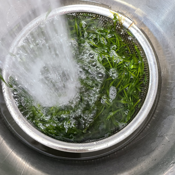 톳을 끓는 물에 소금 1큰술 넣고 1분 정도 데쳐서