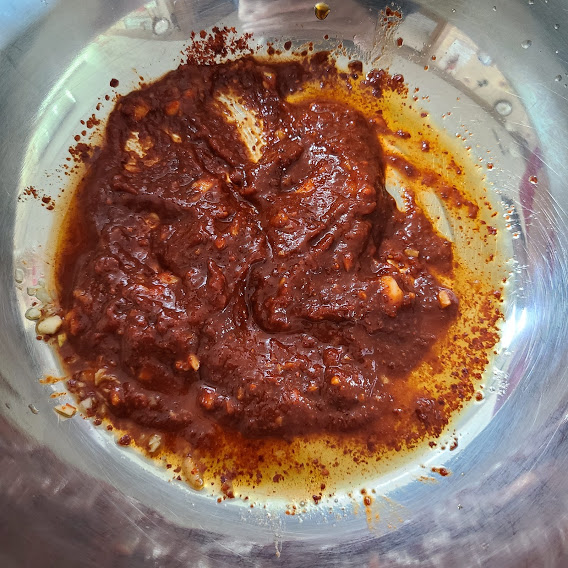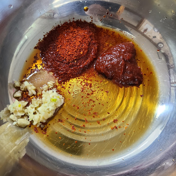 (고춧가루 1큰술, 진간장 1큰술, 식초 2큰술, 설탕 1작은술, 고추장 1큰술, 다진마늘 1작은술)