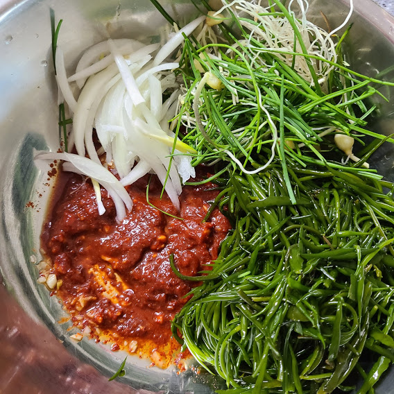 톳 250g, 달래 100g, 양파 1/4,