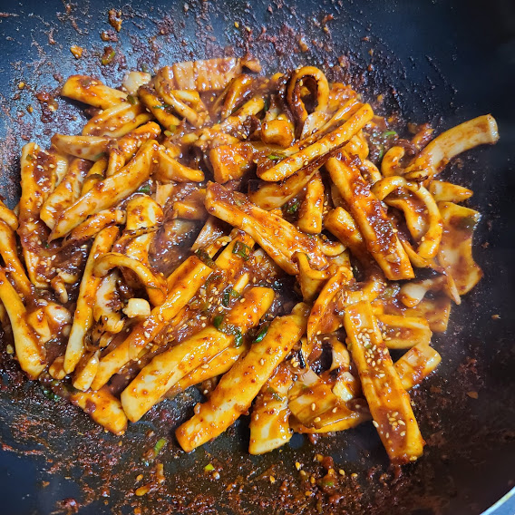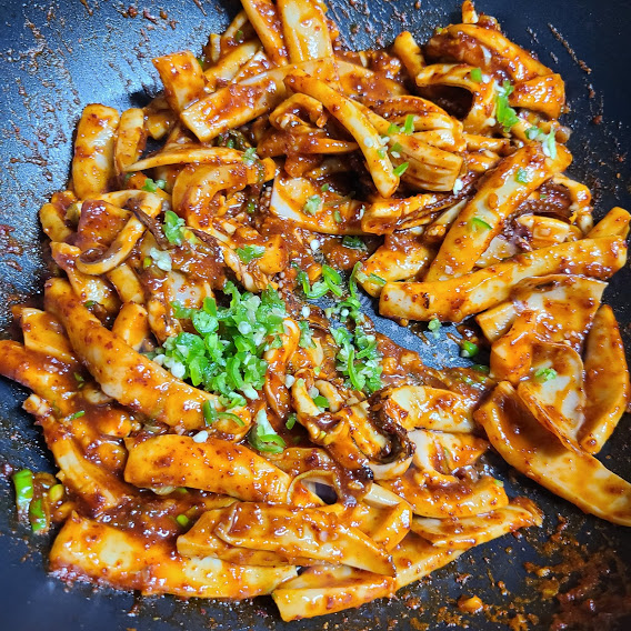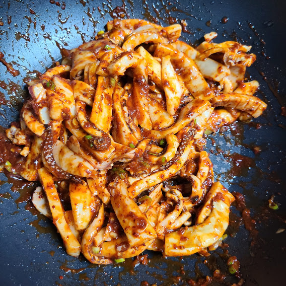 쫄깃하고 매운 맛 오징어 볶음!