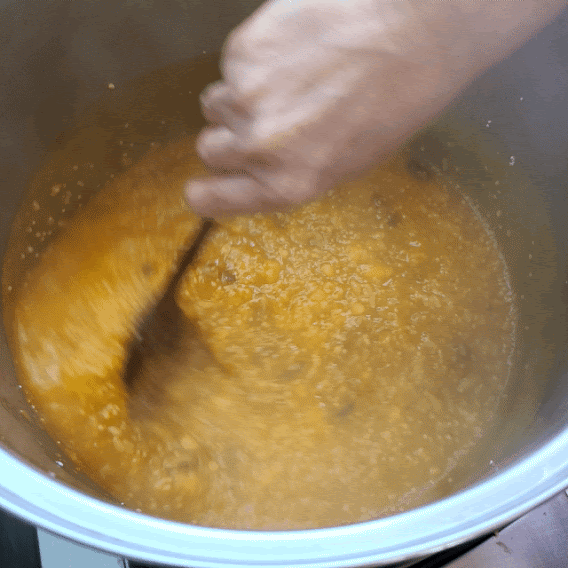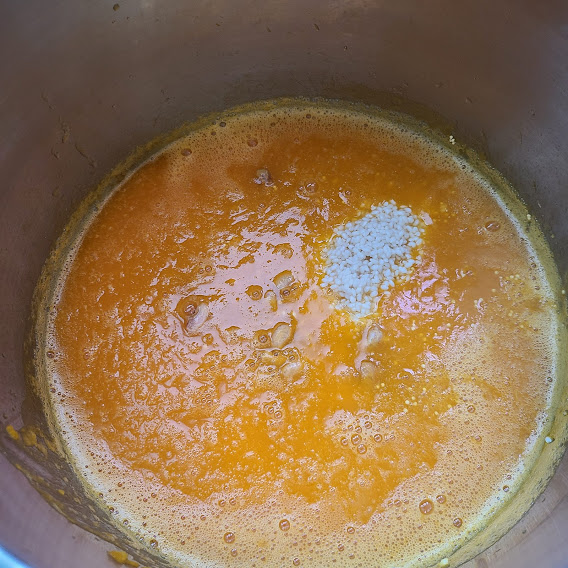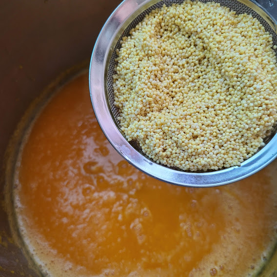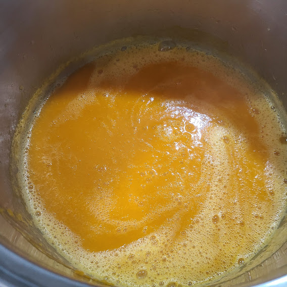 호박이 익으면 핸드 믹서기로 부드럽게 갈아 줍니다.