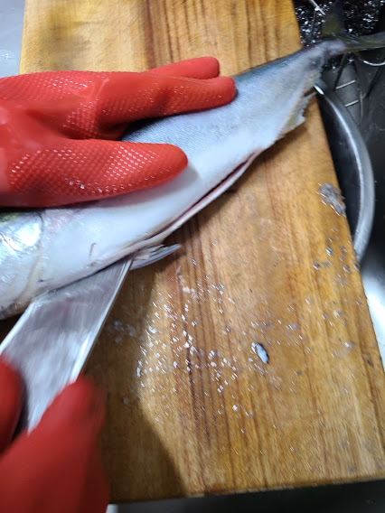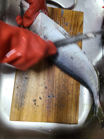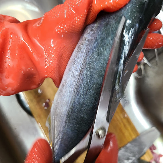 그리고, 가위로 지느러미 제거해줍니다.