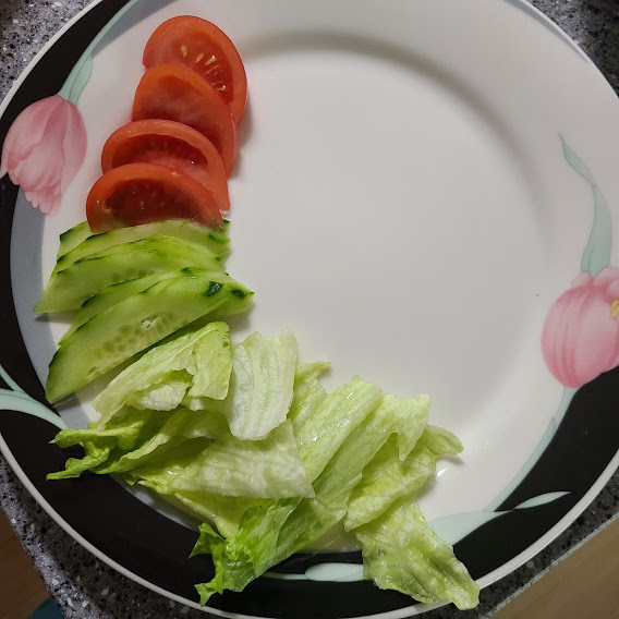 양상추, 오이, 토마토 올려 줍니다.