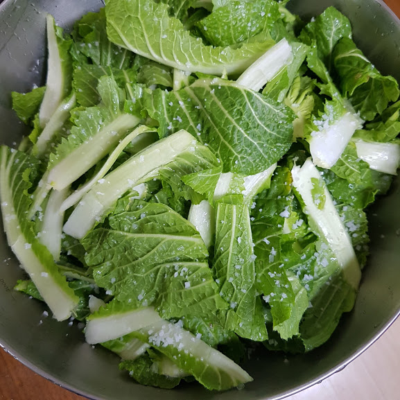 씻어서 봄동은 소금에 30분 정도 절여 줍니다.
