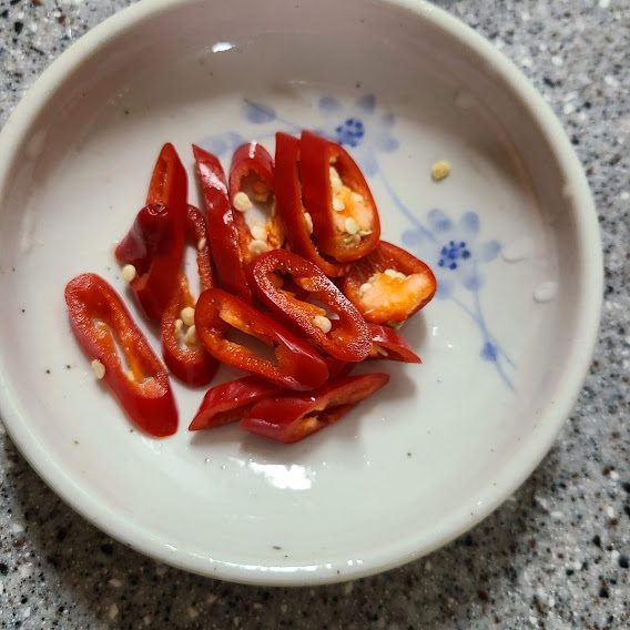 홍고추 1, 파 1, 된장 2큰술