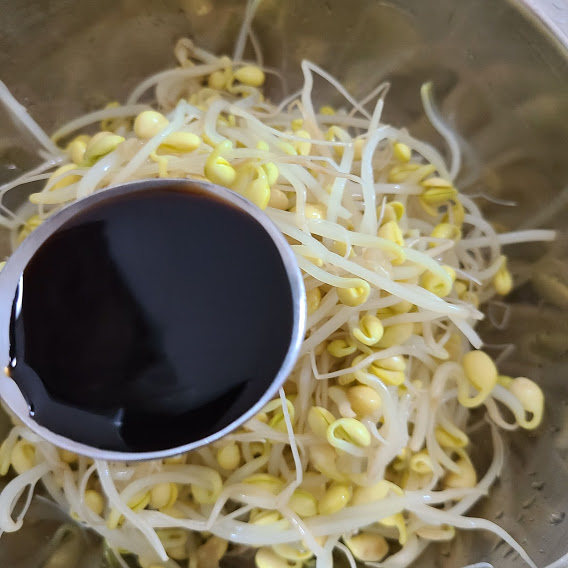 물기를 제거한 콩나물을 볼에 담고