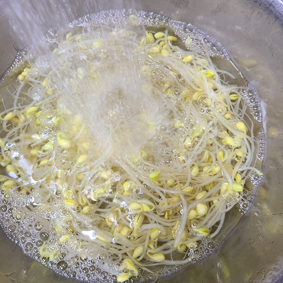 삶은 콩나물을 찬물에 헹구어 줘요